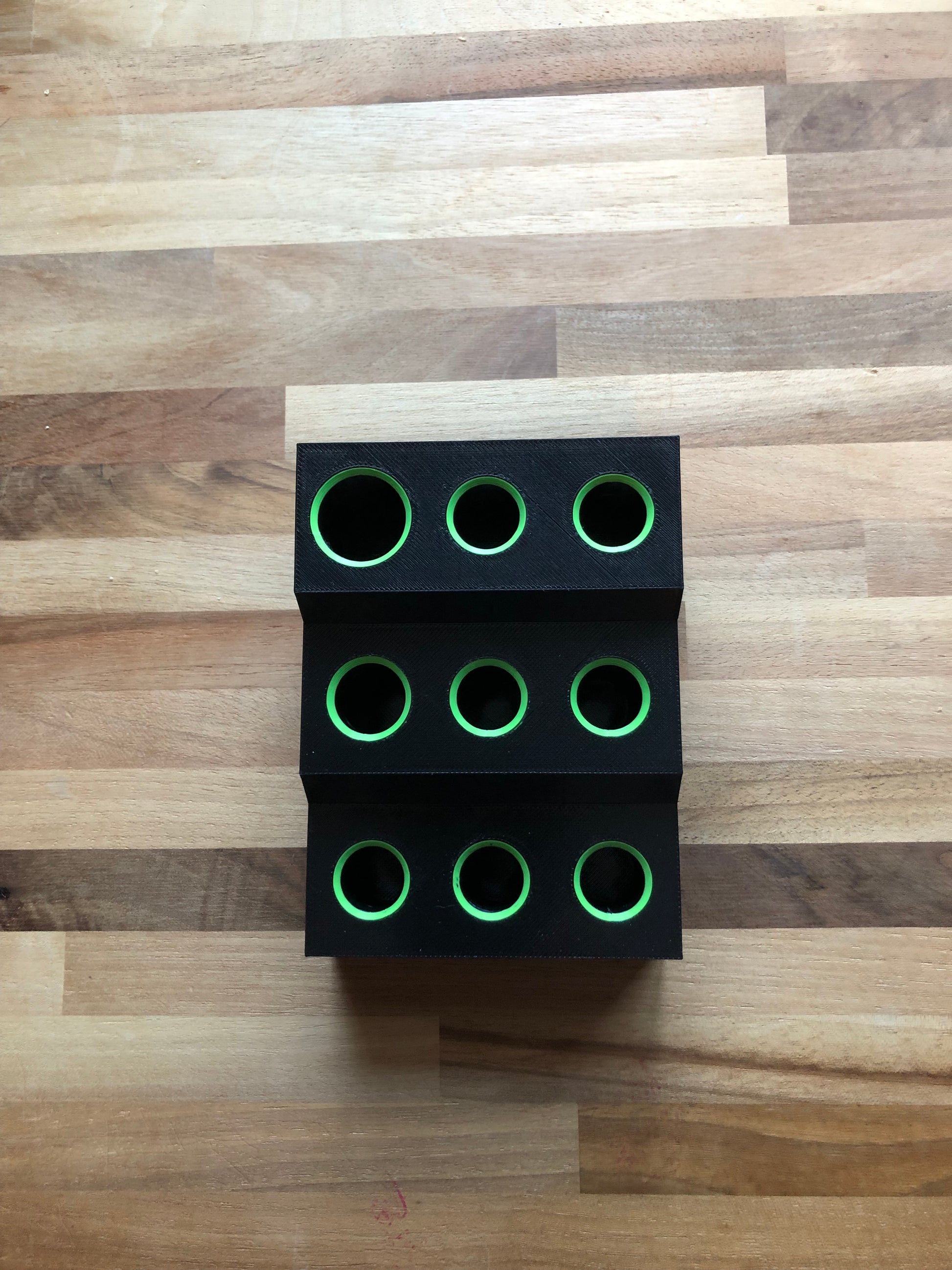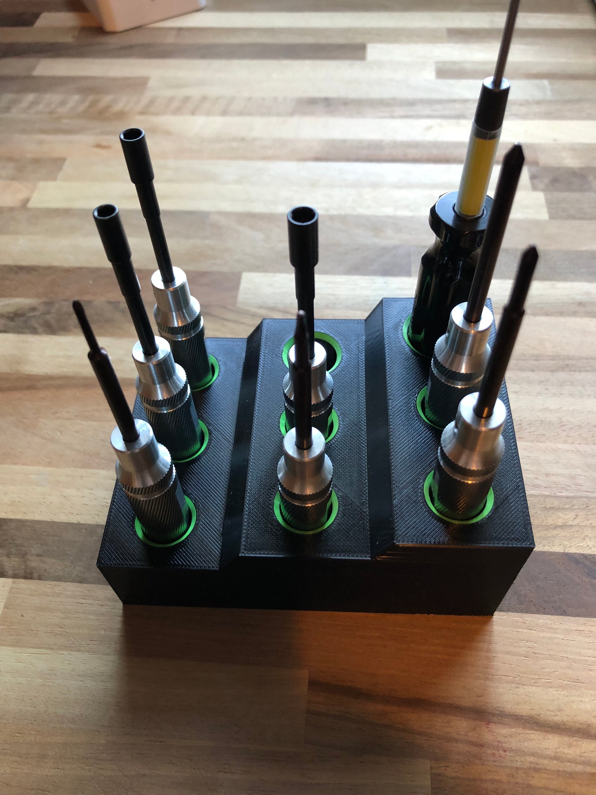 Looking for a semi compact tool holder that will hold most of your Mini Z tools? We have the solution for that. This 9 hole tool holder is setup to hold the mini z tool kit in 7 spots with two different sized larger holes for other tools. This tool holder is 3d printer with PETG for longetivity and impact resistance. We can customize colors and hole sizes if you need as well. Designed and manufactured in the Pacific Northwest. Includes free shipping.
